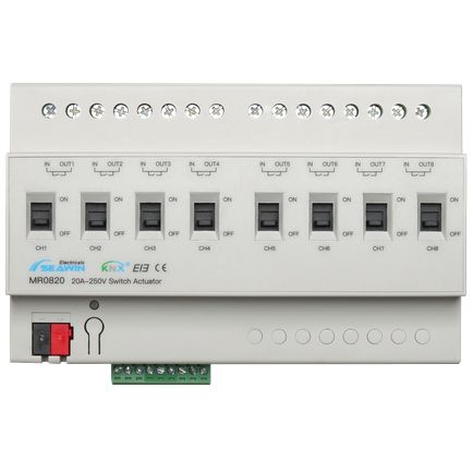 Les actionneurs de commutation KNX de la série 20A sont utilisés pour contrôler les charges de commutation, telles que l'éclairage, le contrôle des rideaux, etc. avec une fonction de maintien magnétique.