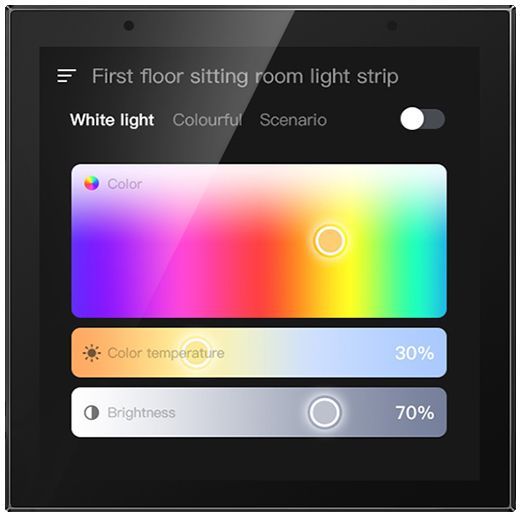 Il permet de contrôler l'éclairage LED, les sonnettes, les serrures, les caméras, la musique, la climatisation, l'interphone, de créer des scènes et bien plus encore.